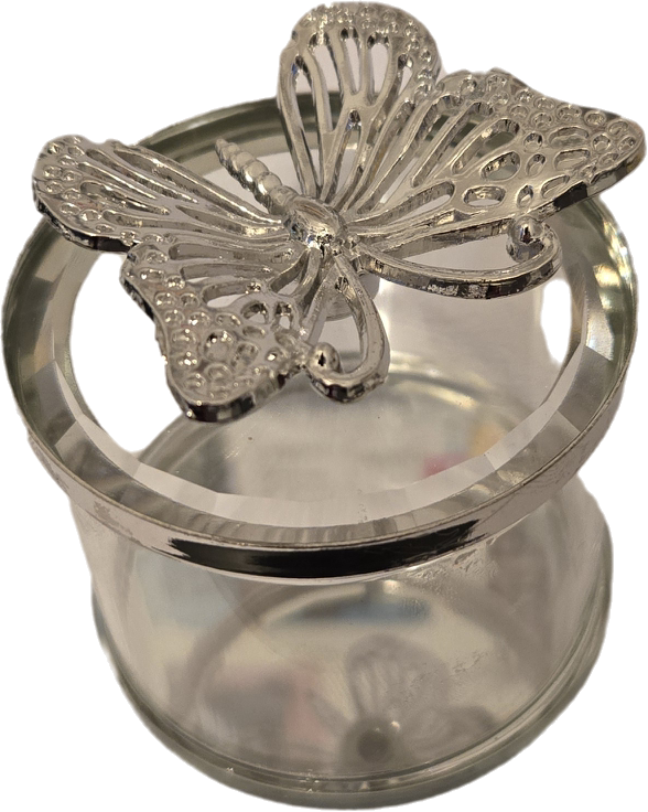 Silver Plated Crystal Butterfly Trinket Box